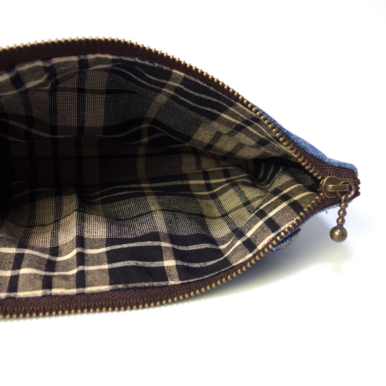リメイクデニム素材を使ったペンケース。