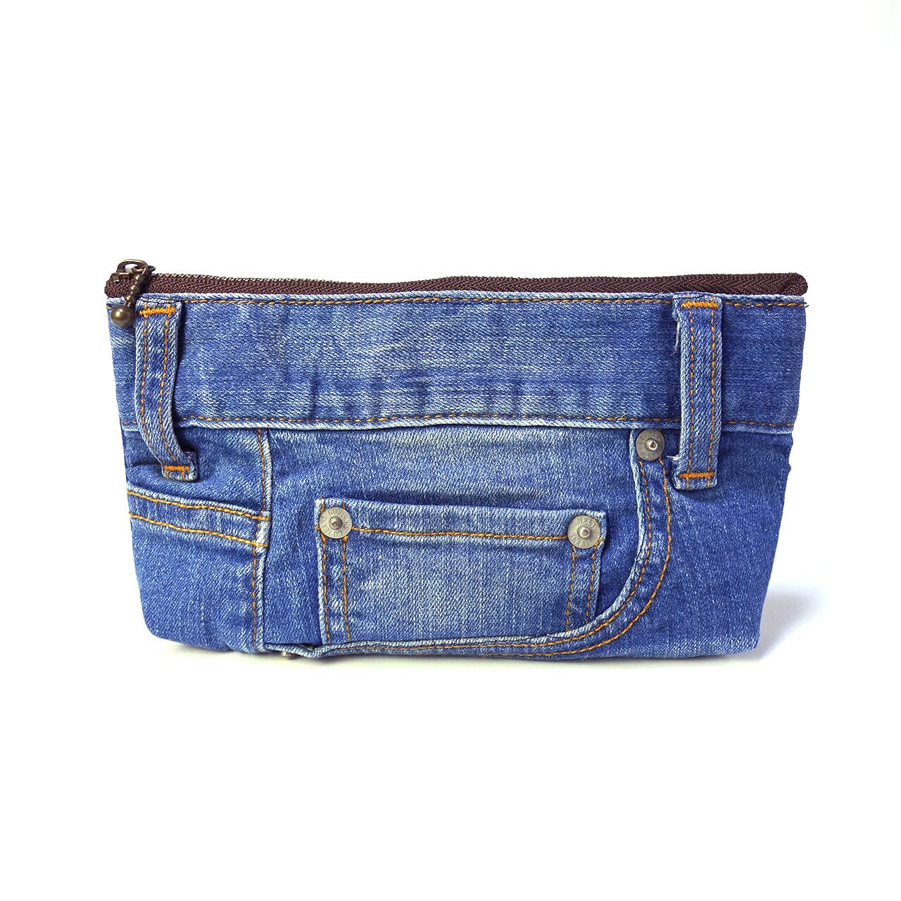 缶ビールが入る大容量ペンケース リメイクデニム素材 ジーンズリメイク